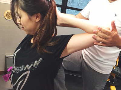 肩甲骨が動かない。その代わり増幅筋や首周辺の筋肉を使います。